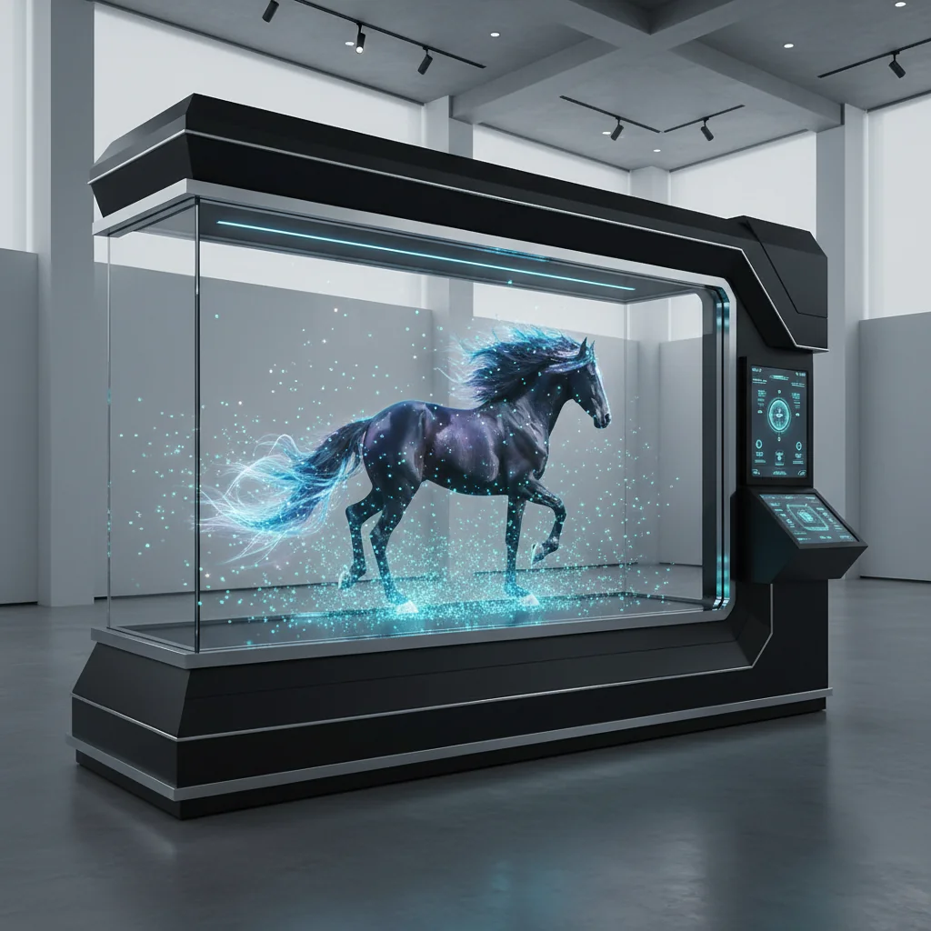 ویترین هولوگرامی به‌گونه‌ای طراحی شده است که محصولات را بصورت سه‌بعدی و با جزئیات دقیق نمایش می‌دهد. مشتریان می‌توانند بدون لمس فیزیکی، محصولات را با زاویه 180 درجه مشاهده و حتی شاهد نمایش ویژگی‌های برجسته محصول بصورت پویا باشند. این تکنولوژی امکان بررسی محصولات را حتی قبل از عرضه بازار فراهم می‌آورد.