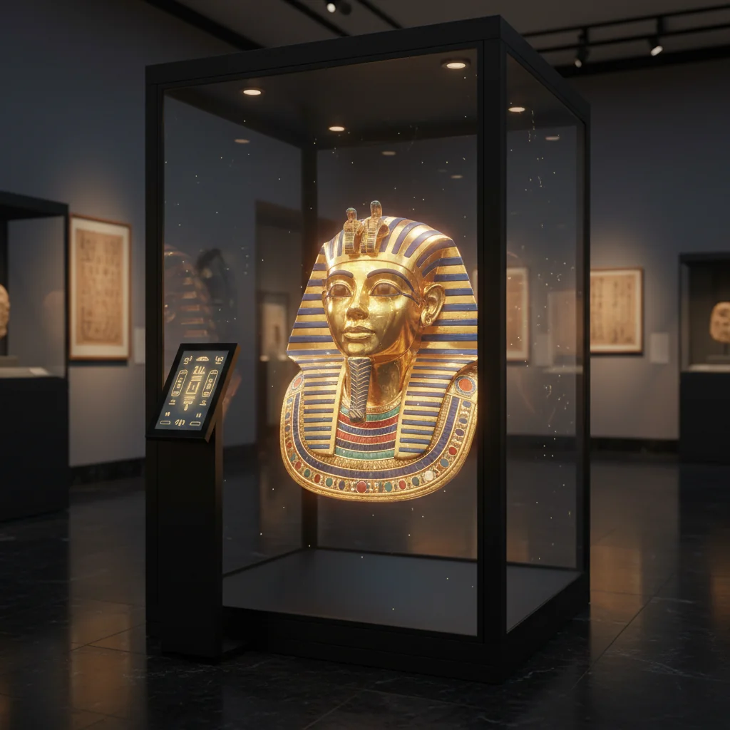 ویترین مجازی در گالری طلا و جواهرات، ساعت و نمایش محصولات در موزه