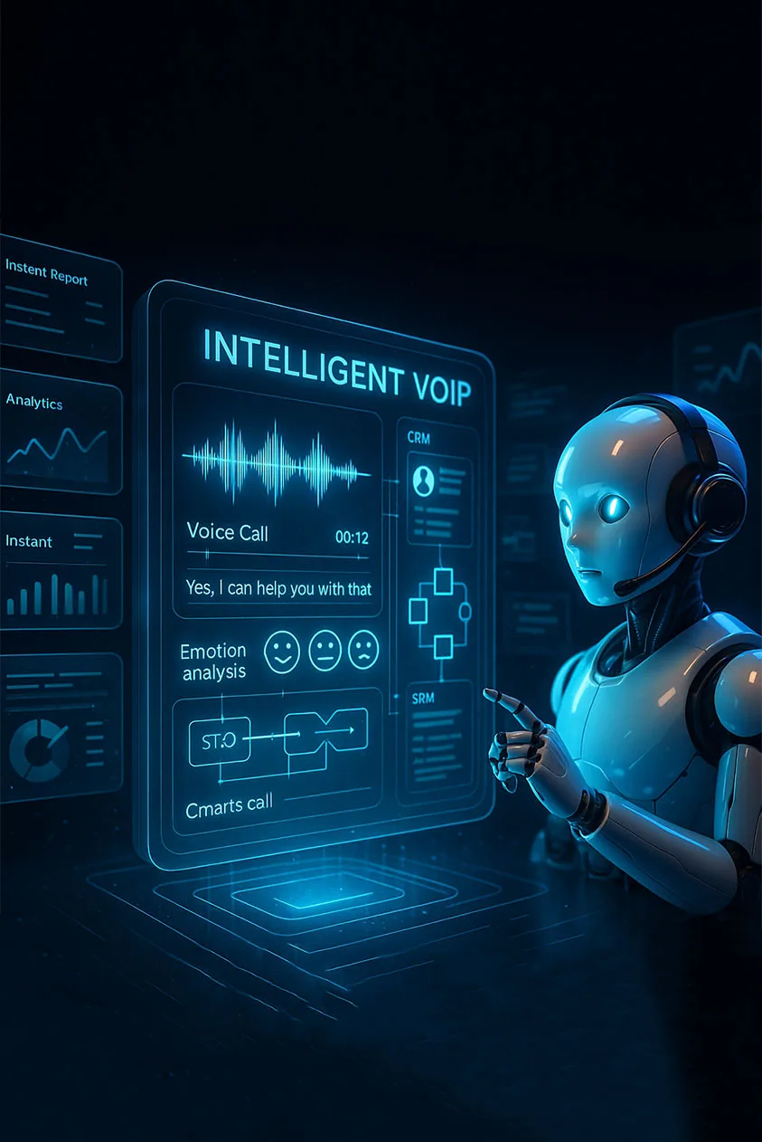 سیستم VoIP هوشمند (Voice over Internet Protocol) نوعی فناوری ارتباطی پیشرفته است که تماسهای صوتی را از طریق اینترنت منتقل میکند و با بهرهگیری از هوش مصنوعی، تجربهای سریع، دقیق و شخصیسازیشده برای کاربران فراهم میسازد. برخلاف تلفنهای سنتی، این سیستمها قابلیتهایی مانند پاسخگویی خودکار، تشخیص گفتار، تحلیل احساسات در مکالمات و مسیریابی هوشمند تماسها را ارائه میدهند. با اتصال VoIP به سامانههای CRM، اطلاعات تماسها بهصورت خودکار ثبت شده و امکان پیگیری مؤثرتر مشتریان فراهم میشود.